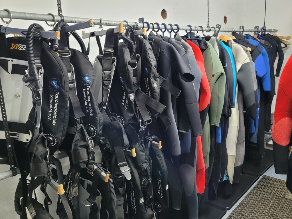 Für die Schwimmbadflossen wollen wir uns ebenfalls noch ein sinnvolles Aufbewahrungssystem ausdenken, so dass die sperrige Gitterbox weg kann. Es sollen noch fünf weitere Mares Reglersätze erworben werden, so dass die Cressis ausgemustert werden können und wir im Resultat acht identische Kaltwassersets mit langem Schlauch haben, welche wir zukünftig dann auch bei der Schwimmbadausbildung einsetzen wollen.